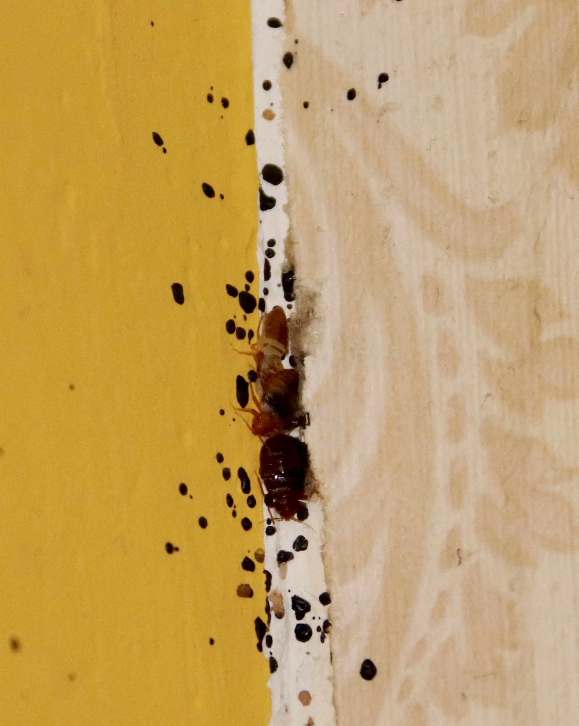Les punaises laissent derrière elles des déjections visibles sous forme de minuscules points noirs, similaires à des crottes de mouches.